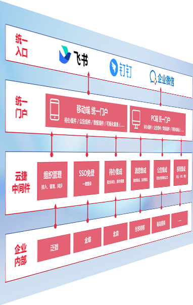对协作平台提供支持服务,,,支持企业应用与协作平台对接,,包含组织同步、、消息集成、、待办集成等。。。支持目前主流的协作平台:钉钉、、、企微和飞书。。。